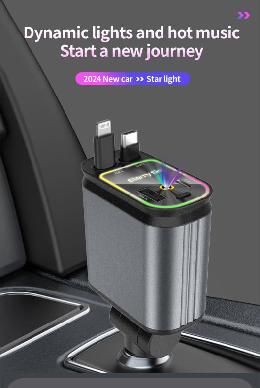 Our Starlight Car Charger does more than just charge your devices. It transforms your car interior with subtle, starlight elegance while ensuring your devices stay charged for the journey.