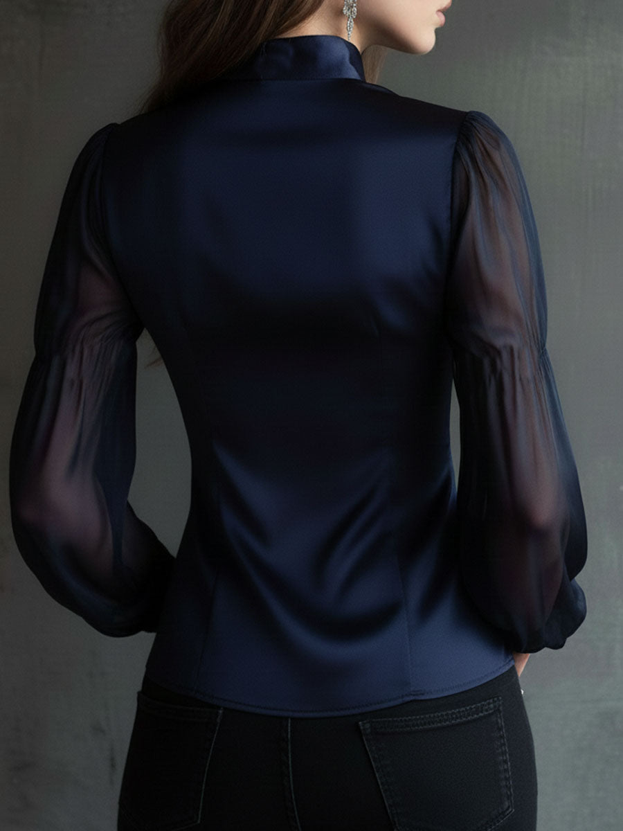 Pair this blouse with a high-waisted skirt or tailored trousers for a refined and polished look. Add pearl accessories and vintage-inspired footwear to complete the ensemble. This blouse is perfect for formal events, romantic dinners, or any occasion that requires a touch of vintage elegance.